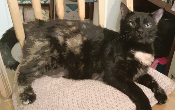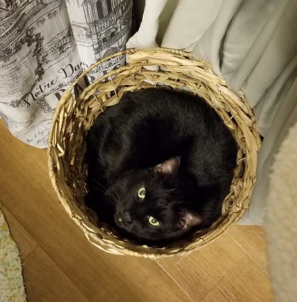 Simon is one of my beautiful adult black cats adopted from the Humane Society last year. He had been left on their front porch in a carrier with a note that read: “Friendly neighborhood cat. Keep carrier.”